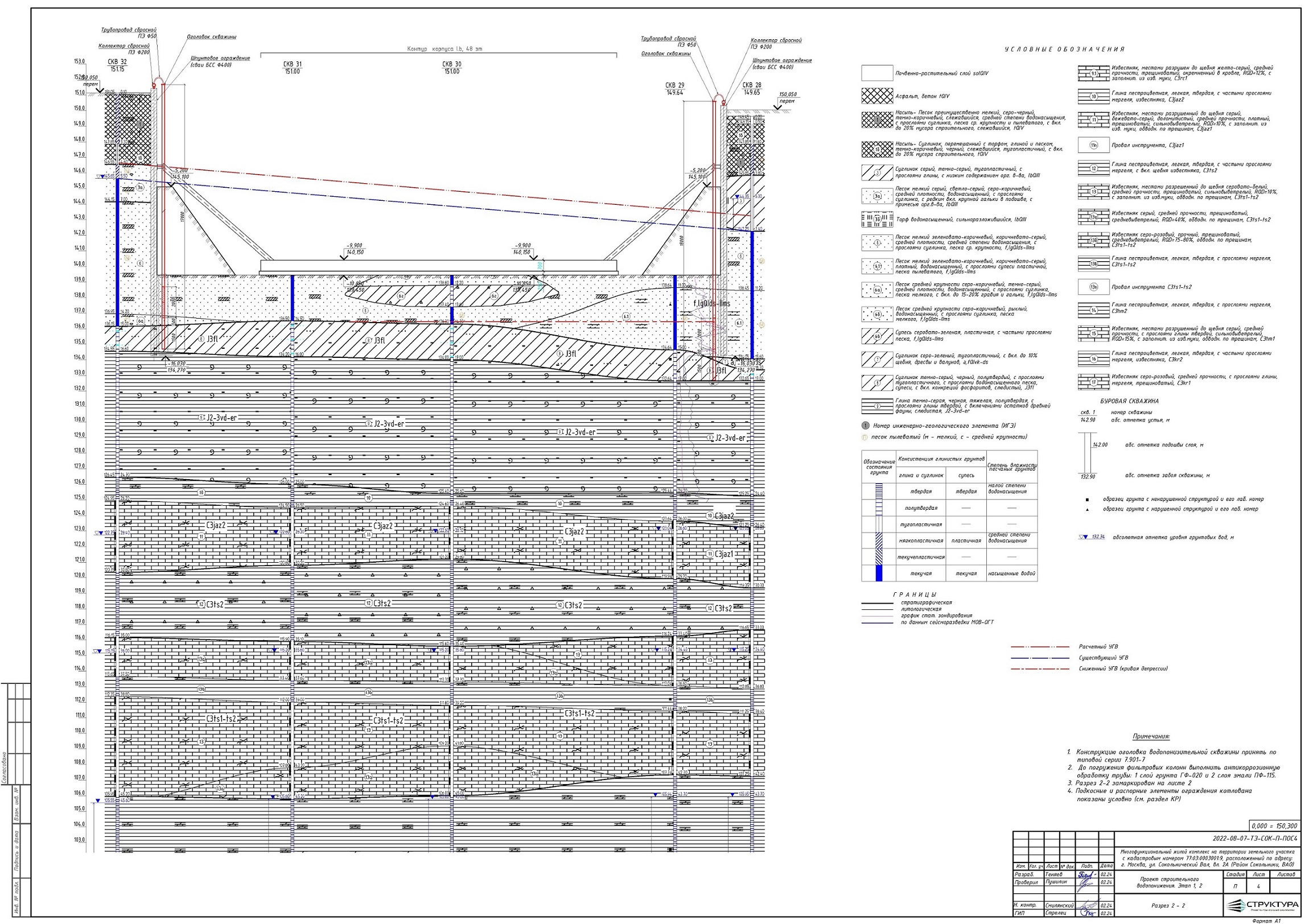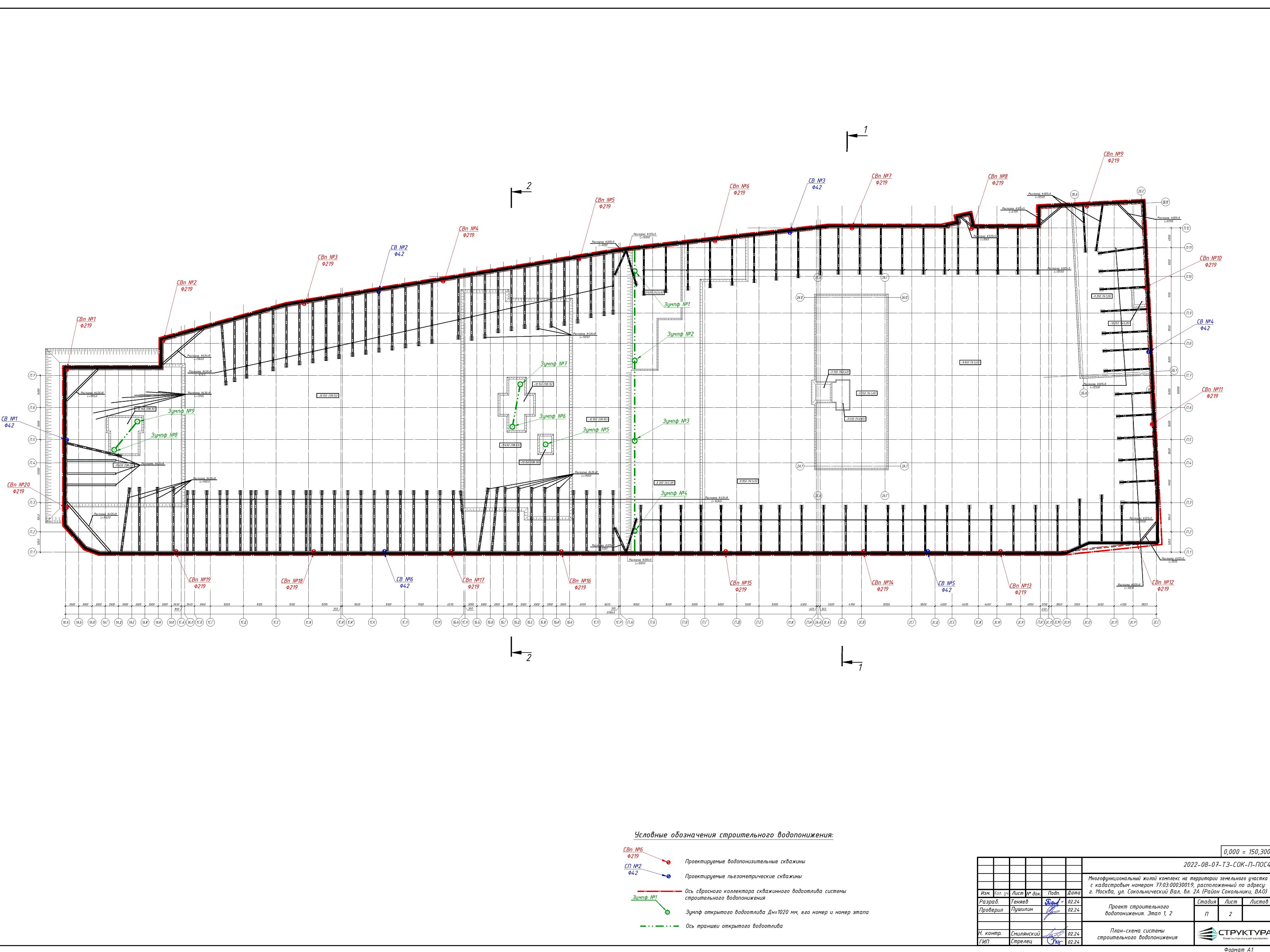 Проект водопонижения разработан с учётом геологических и геотехнических условий и конструктивных особенностей объекта (подземный паркинг)