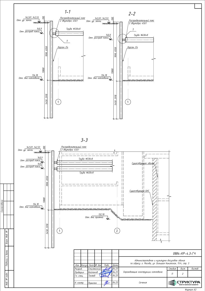 Проектирование ограждающих конструкций котлована с учётом геотехнических условий окружающей городской застройки