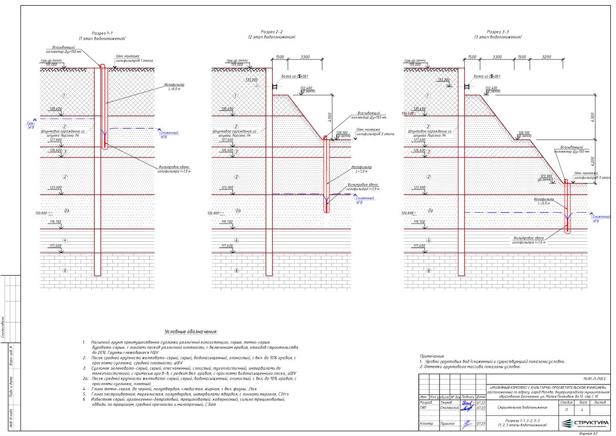 Проект водопонижения разработан с учётом геологических и геотехнических условий и конструктивных особенностей объекта (подземный паркинг)